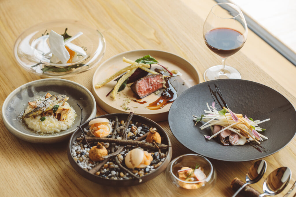 12:30 地域の食材をふんだんに使った沿線ガストロノミー(コースランチ・地酒ペアリング3種付き)